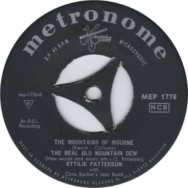 Ottilie Patterson with Chris Barber’s Jazz Band ‎– Ottilie Swings The Irish (7″EP DK 1960) vg+