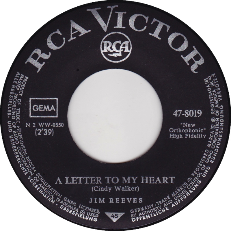 Jim Reeves – Adios Amigo / A Letter to my Heart (7″si Germany 1962)
