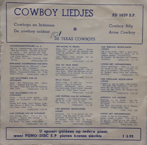 De Texas Cowboys – Cowboy Liedjes (7"EP NL 1964) vg++/vg++ quantity