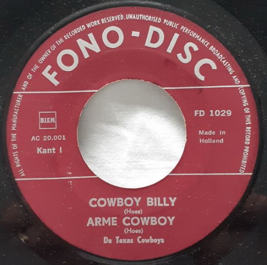 De Texas Cowboys – Cowboy Liedjes (7″EP NL 1964) vg++/vg++