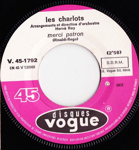 Les Charlots ‎– Merci Patron (7″si France 1971)