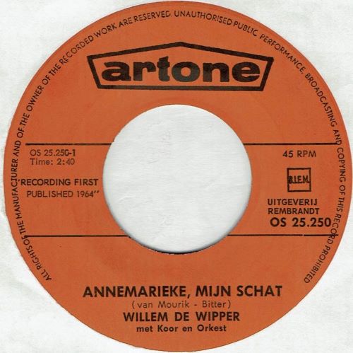 Willem de Wipper – Annemarieke, Mijn Schat (7"si NL 1964) vg++/nm quantity